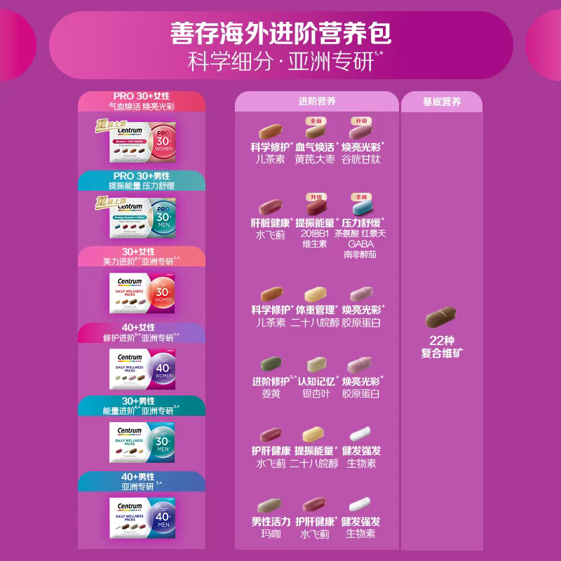 善存海外30+岁亚洲女性专研进阶每日复维营养包含谷胱甘肽儿茶素