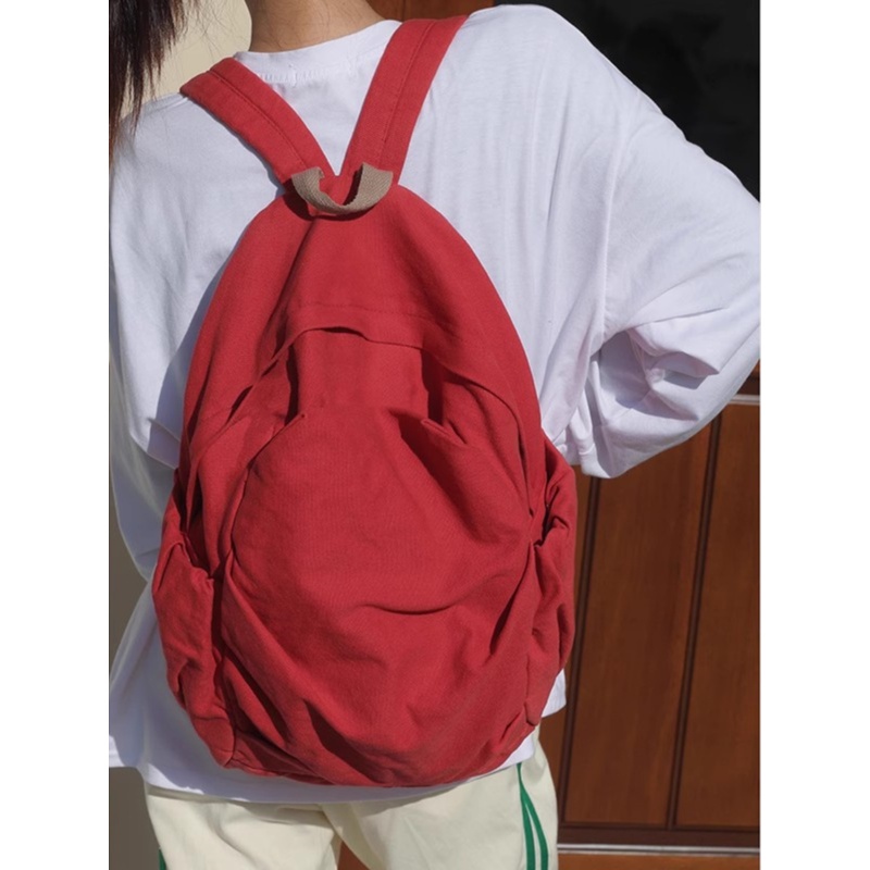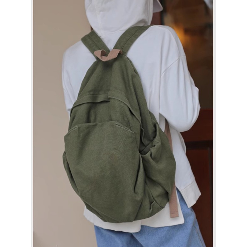 法国MKPREF水洗帆布双肩包女简约百搭高中大学生书包女大容量背包
