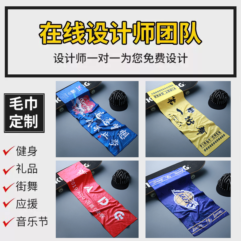 来图案定制应援毛巾运动健身印字logo篮球广告街舞马拉松周边手幅
