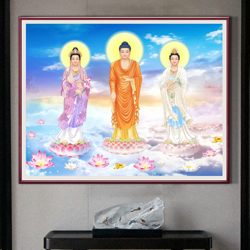 2026新款钻石画满钻客厅观音5d砖石十字绣2025佛像人物西方三圣图