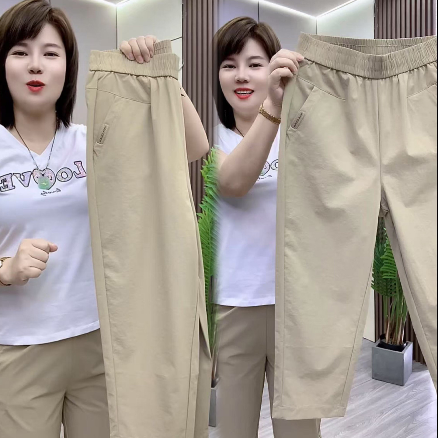 夏季薄款速干弹力七分裤女宽松高腰显瘦哈伦裤小个子百搭裤长80CM