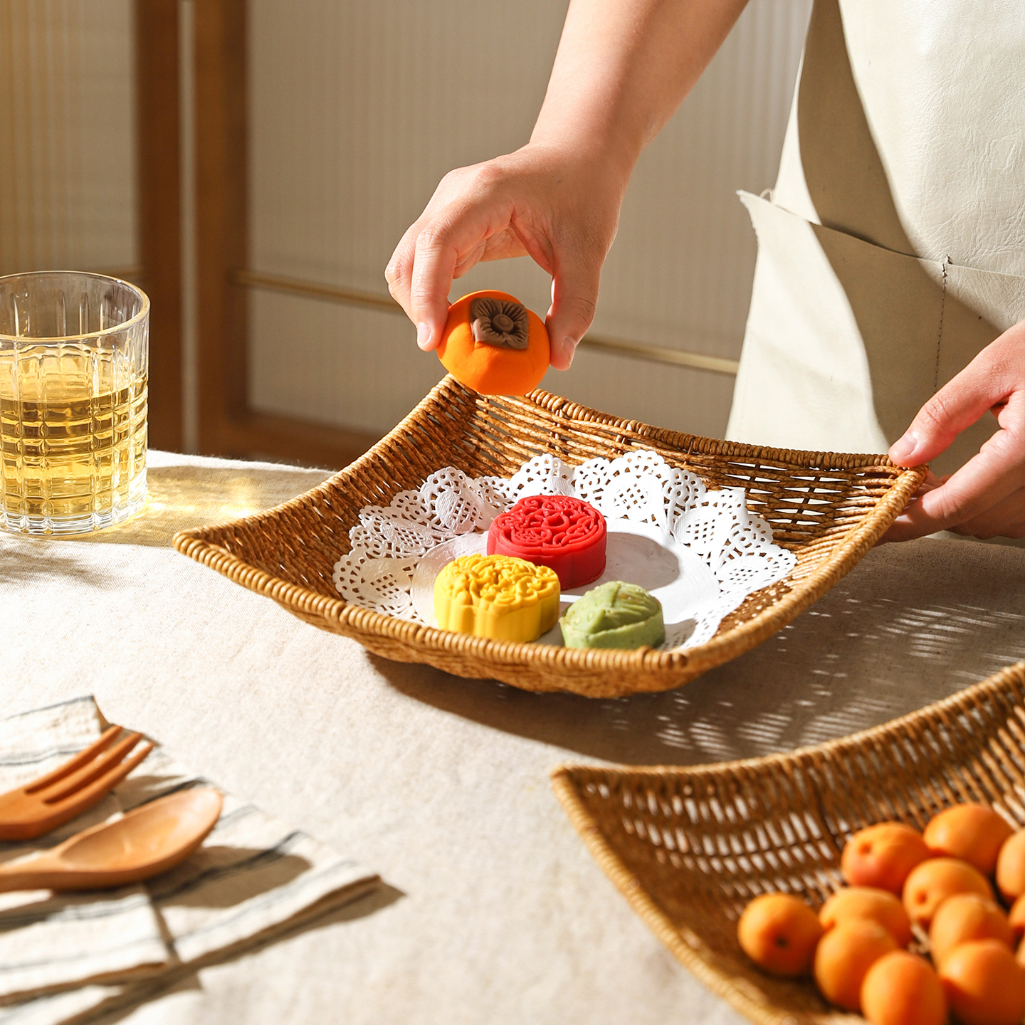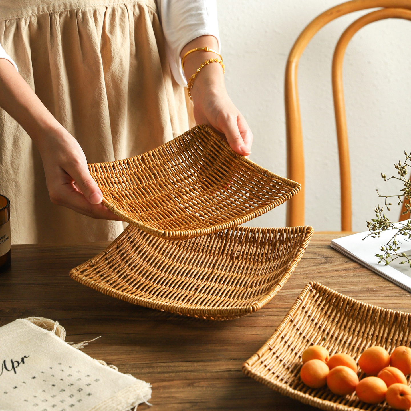 舍里复古仿藤编茶点篮点心盘茶台水果盘餐厅茶几家用零食盘小吃盘