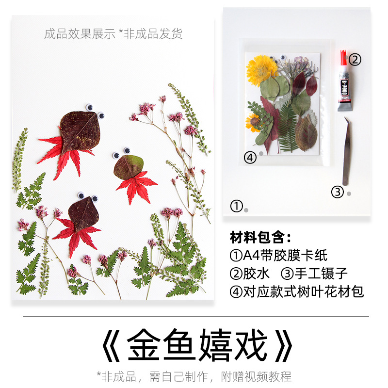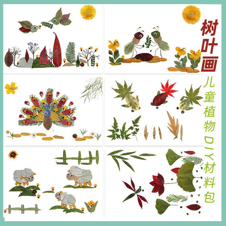 手工diy真树叶粘贴画材料包春天植物标本落叶子儿童创意拼贴作品