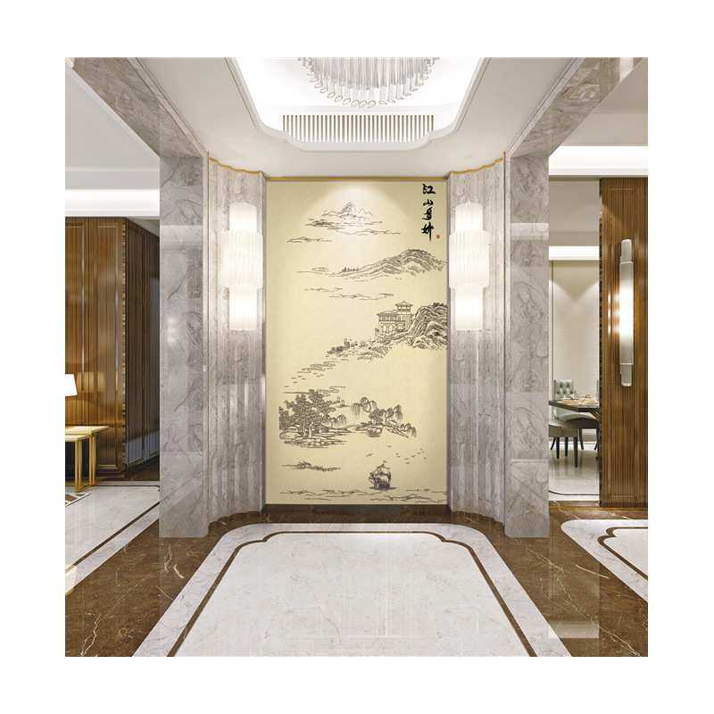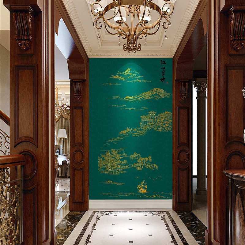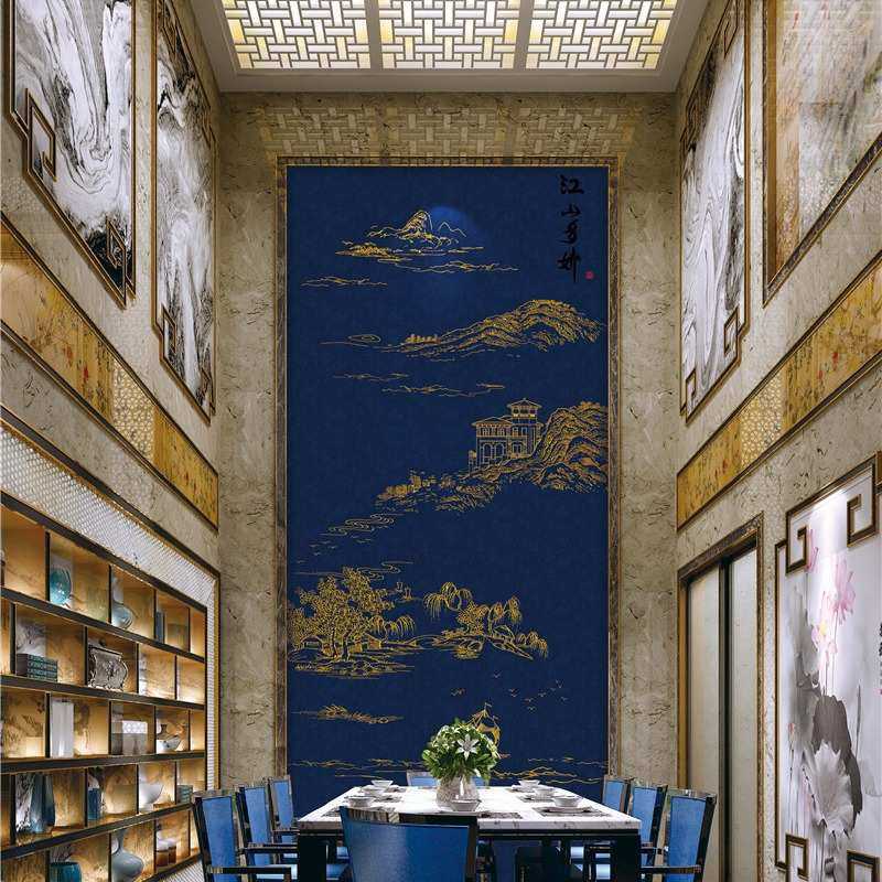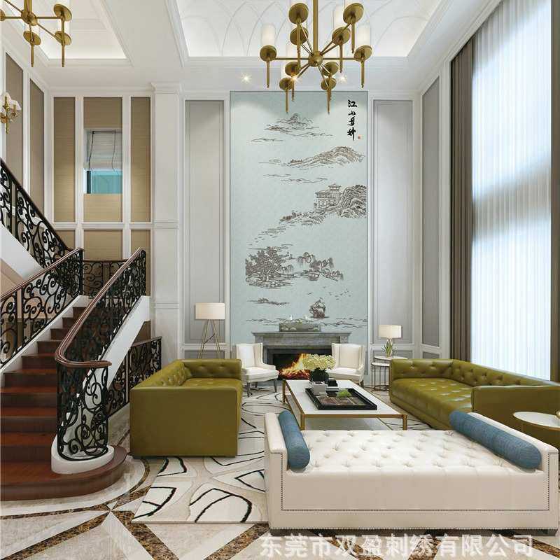 独绣背景墙布无缝刺绣沙发客厅电视背景壁布江山楼阁别墅高层玄关