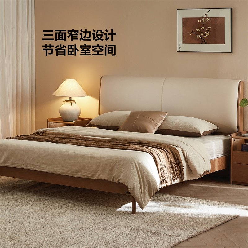 全友家居北欧风皮艺软包床主卧室1米8双人大床2025新款实木脚床