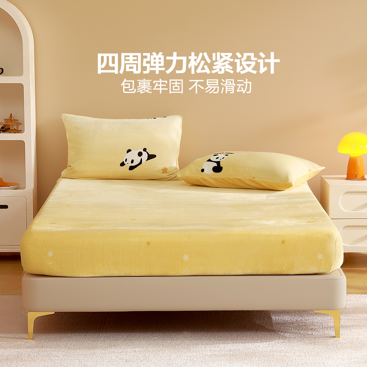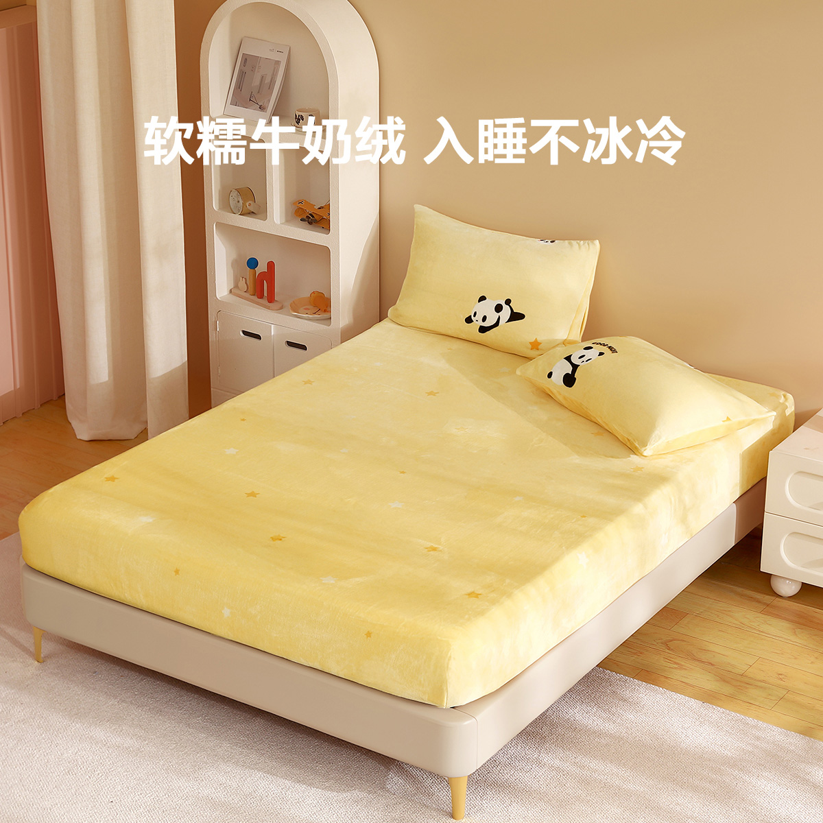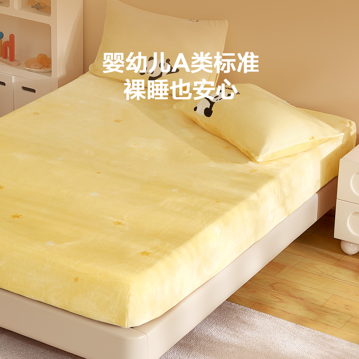 水星家纺儿童牛奶绒床笠单件母婴A类抗静电暖绒床垫罩保暖床品