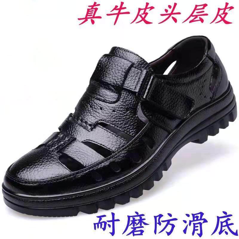 真皮头层牛皮男士镂空皮凉鞋洞洞鞋透气休闲鞋中老年爸爸鞋皮鞋男
