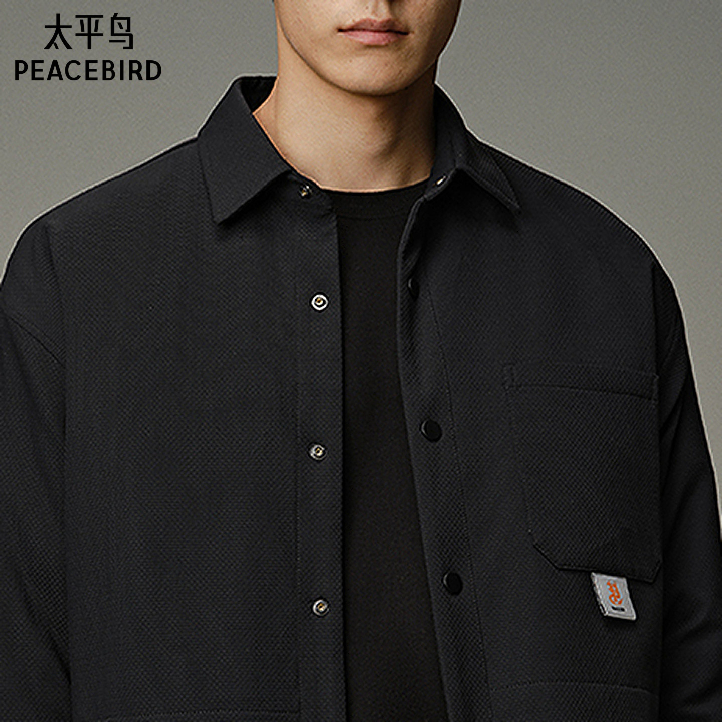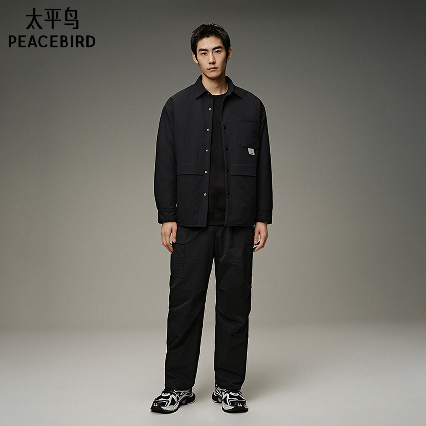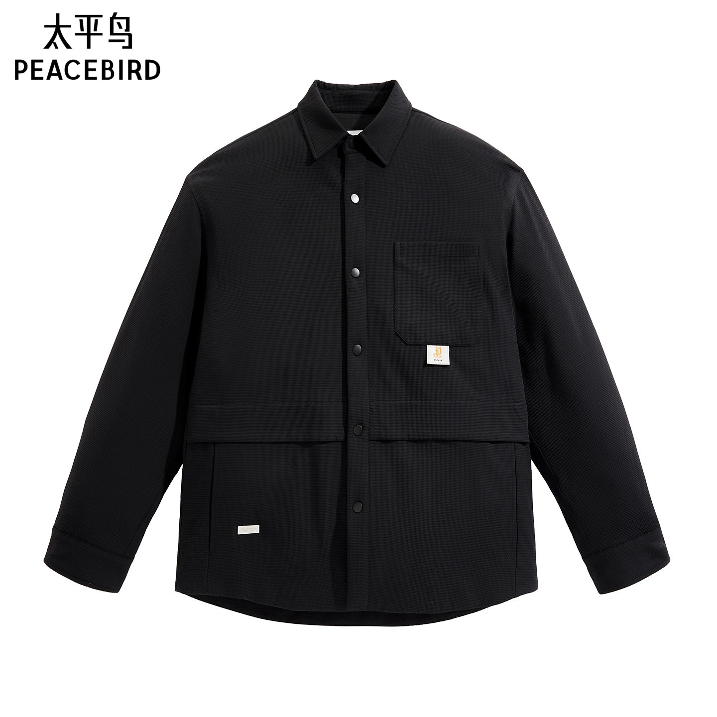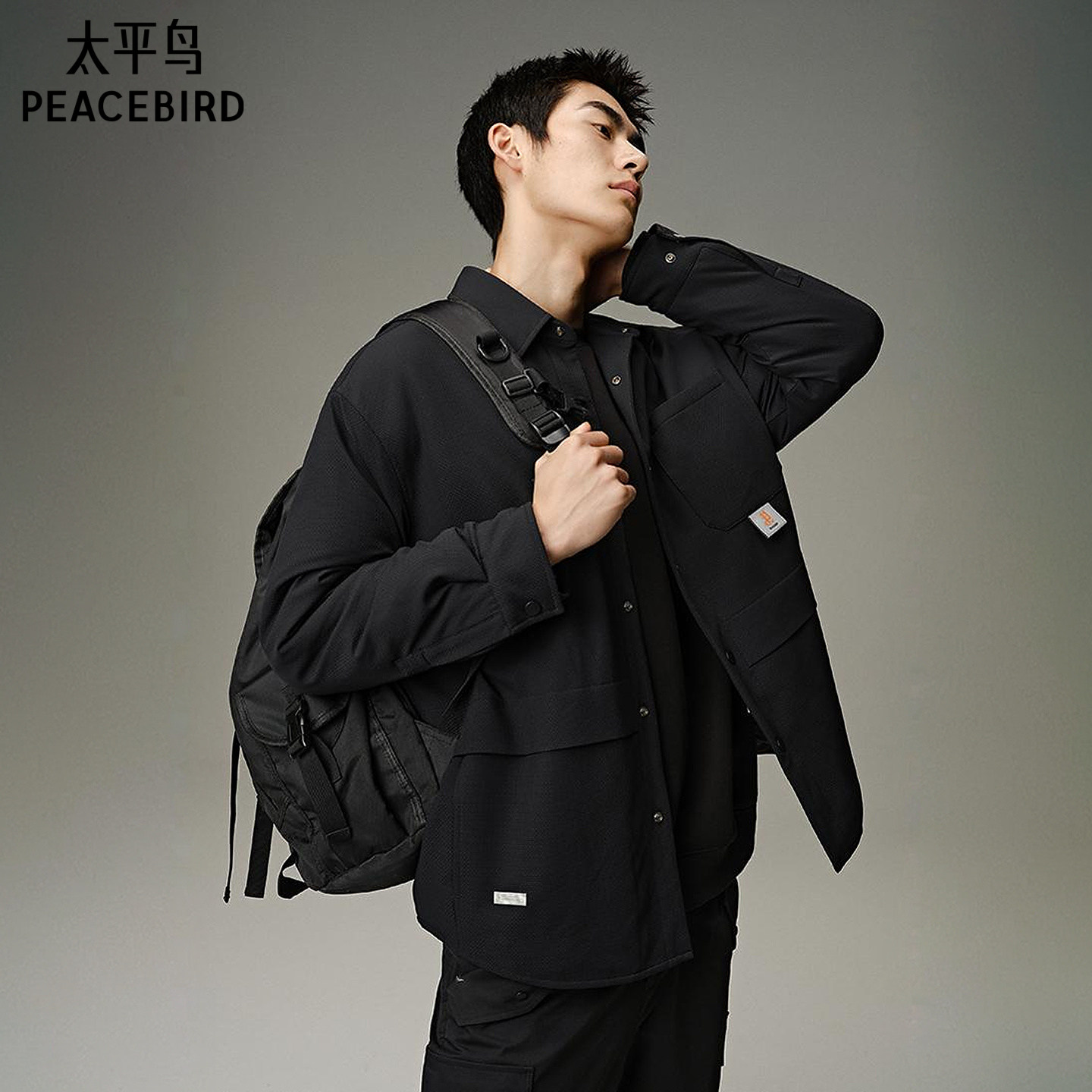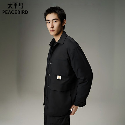 太平鸟男装 鹅绒羽绒服冬季潮流保暖衬衫式黑色翻领保暖外套男