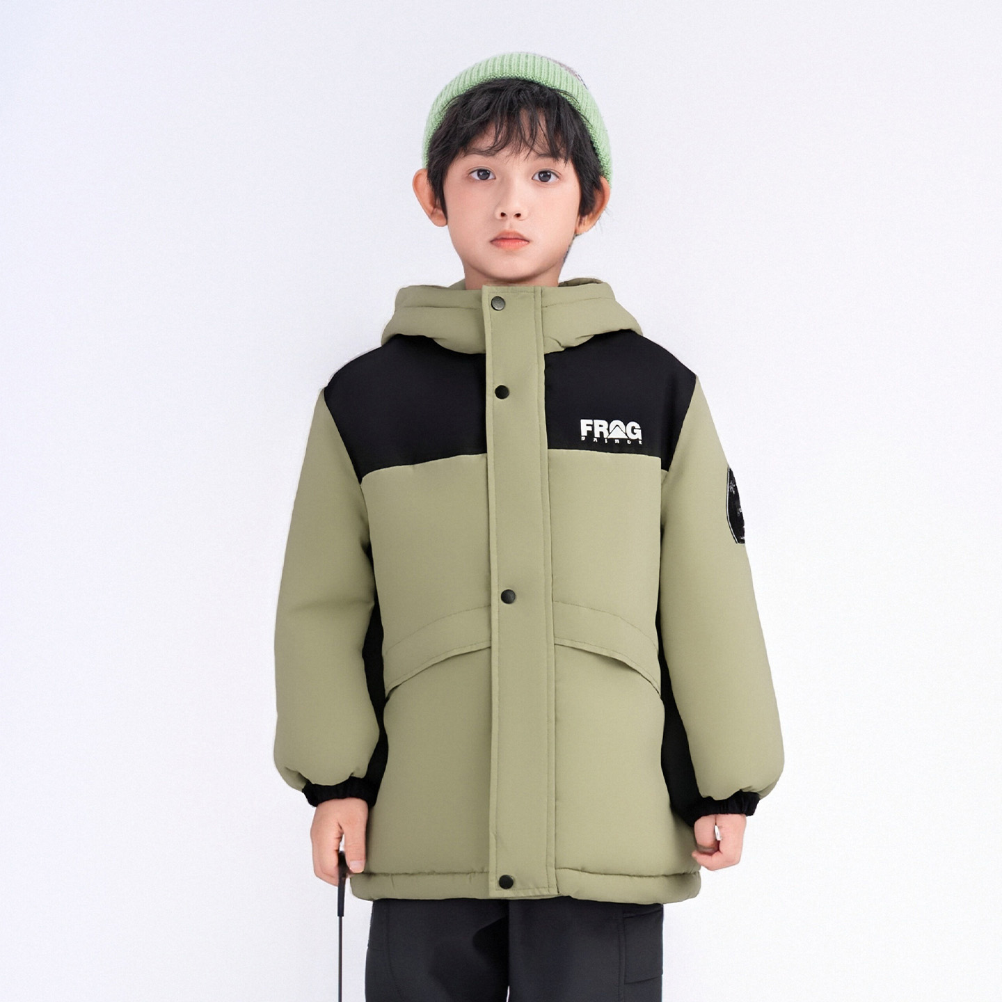 青蛙王子童装儿童加绒棉衣冬季新款男女童加厚保暖风衣冬装外套