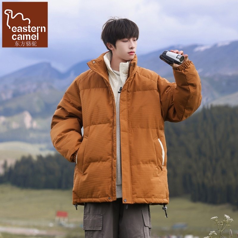 冬季撞色新款假两件立领羽绒服男高街时尚青少年休闲百搭保暖外套