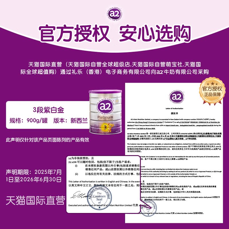 【自营】a2奶粉三段新紫白金3段幼儿进口乳粉1岁以上900g