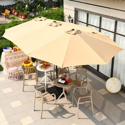 户外三头遮阳伞户外庭院休闲中柱伞大型沙滩露营太阳伞室外花园伞