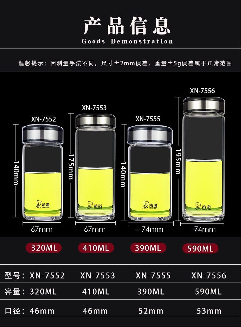 希诺玻璃杯单层加厚水晶杯大容量便携车载男西诺水杯茶杯个人专用