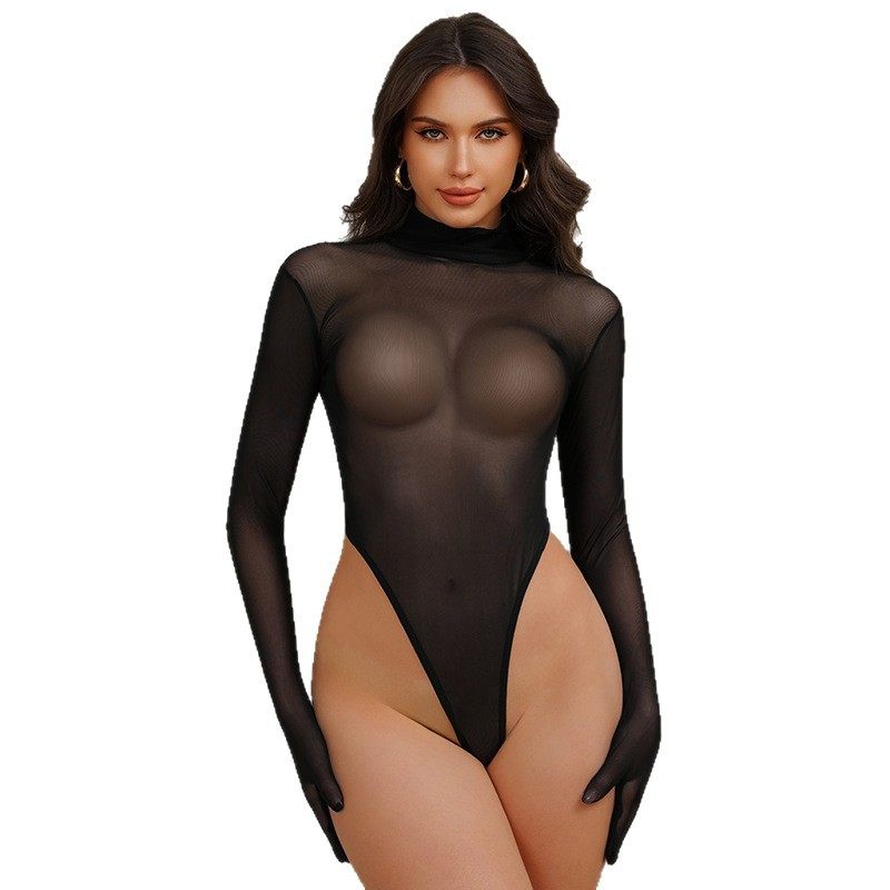 性感网纱女装大佬伪娘透视连体衣开档诱惑cd变装连身制服男娘内衣