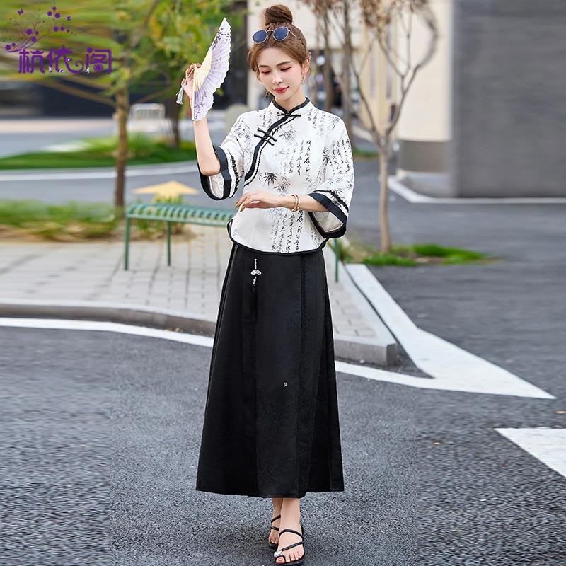 新中国裙风套装女连衣裙装夏新款复古改良ZMENG11旗袍汉服式两件
