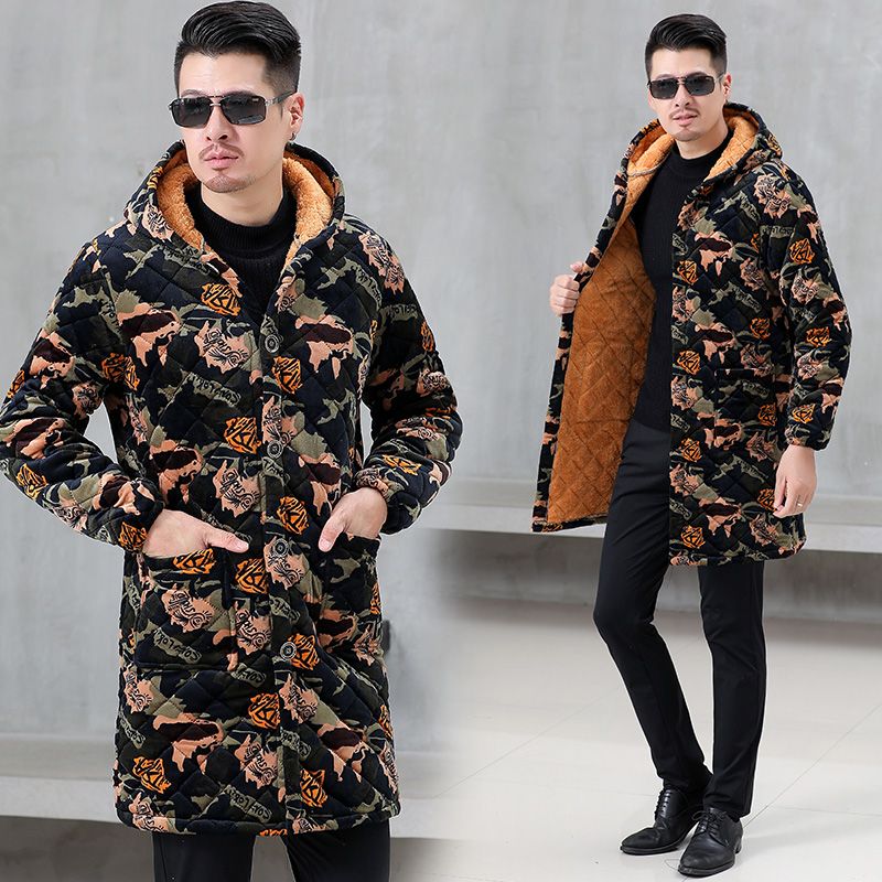 四川省服男士罩衣工作服男款棉衣加绒加厚大褂宽松冬季中长款棉服