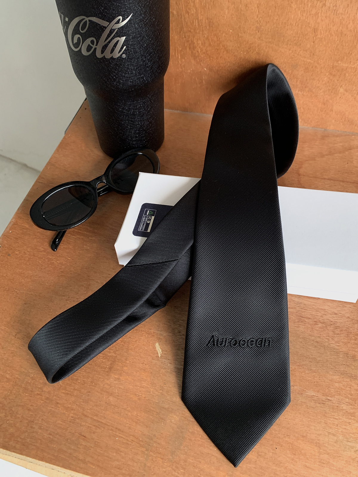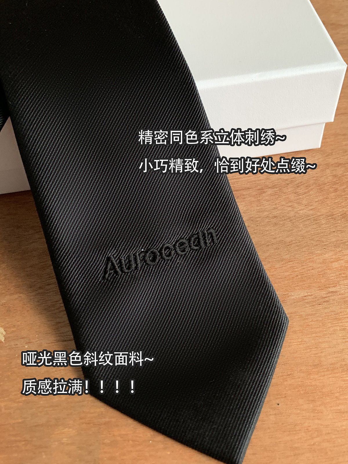 Aurocean 黑色领带 学院风复古少年感纯色刺绣哑光高品质男生礼物