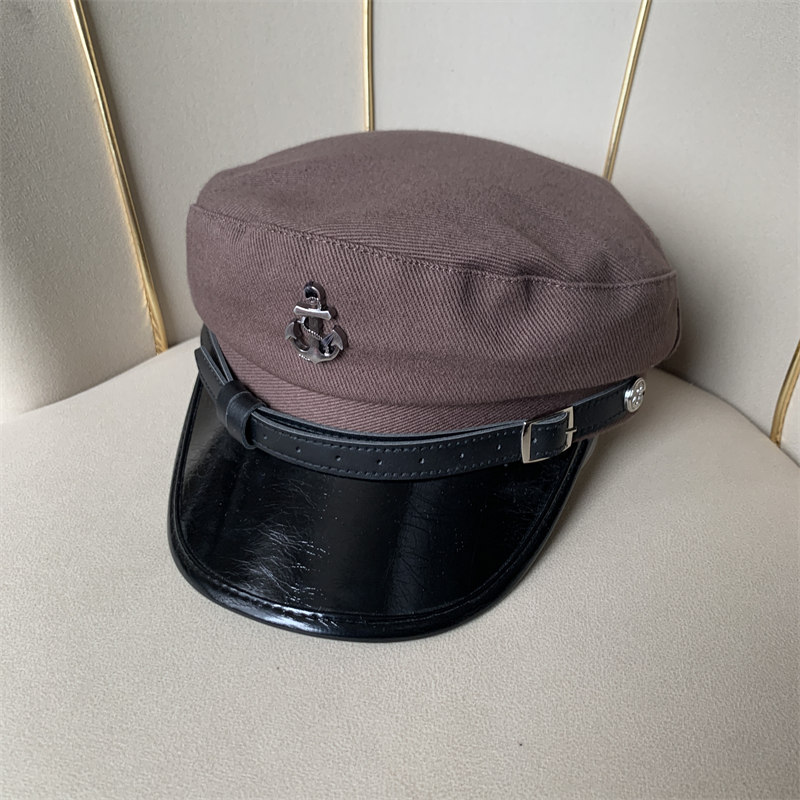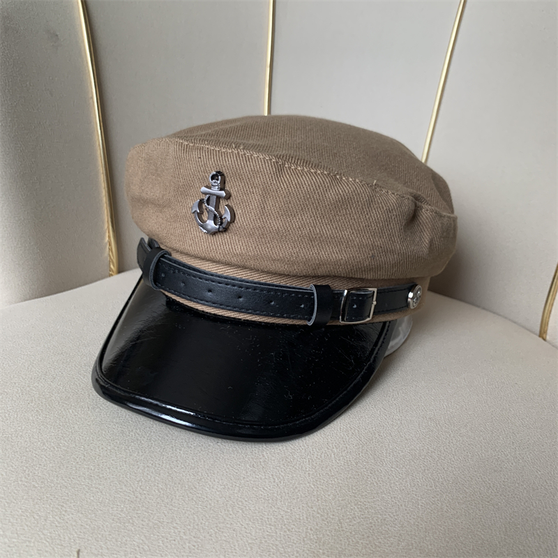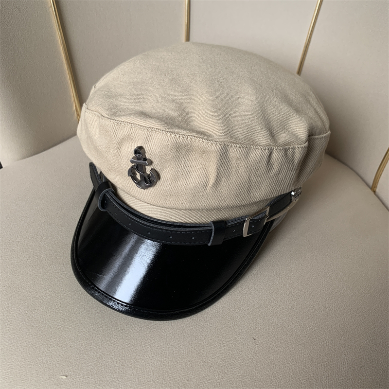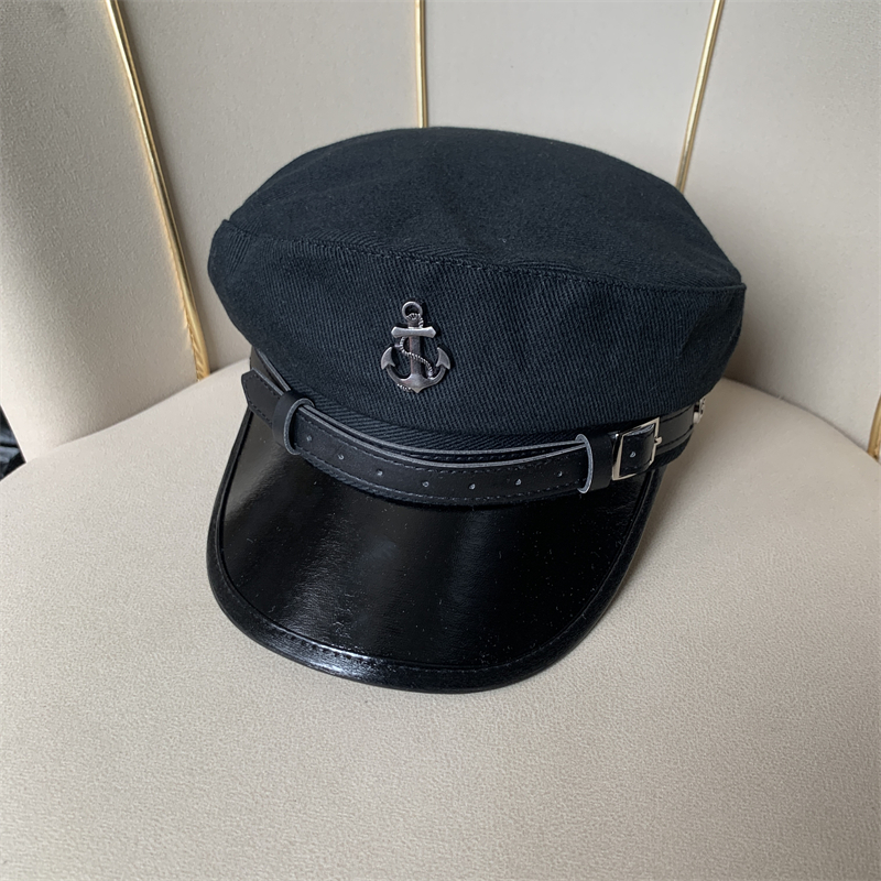 海军风女贝雷帽子2025新款黑色八角帽皮质春秋船锚英伦报童鸭舌帽