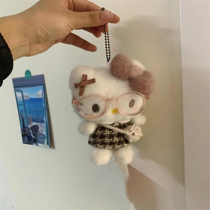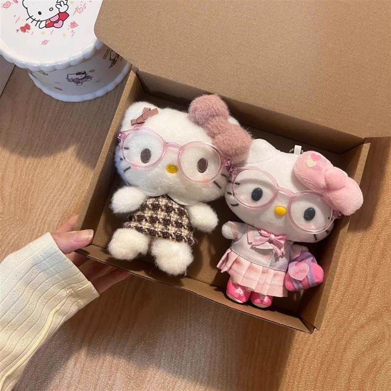 日本PeerEx樱花拿铁眼镜公仔哈喽kitty挂件包包挂饰毛绒玩偶kt猫