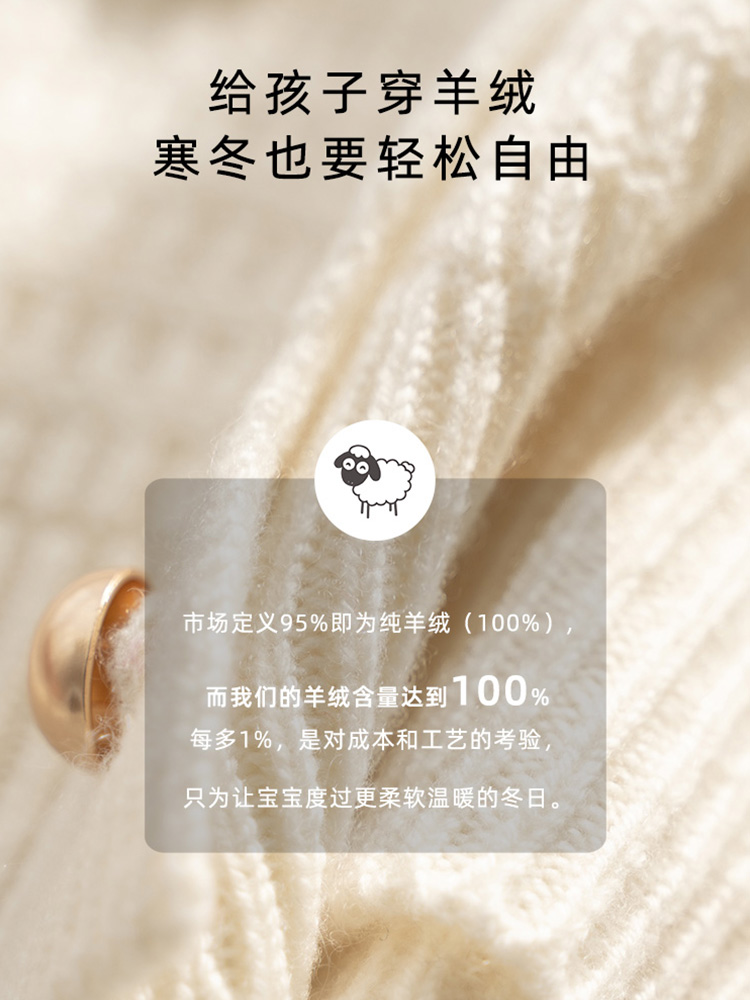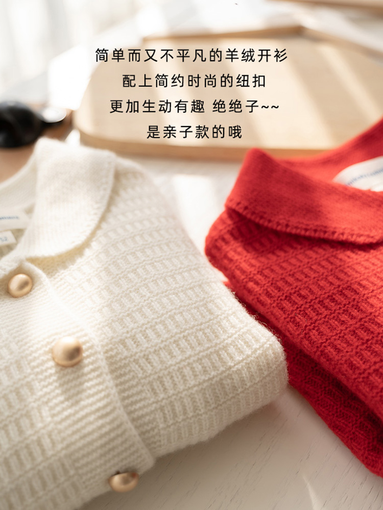 Anikaka女童亲子装秋冬季新保暖纯色山羊绒开衫儿童翻领针织毛衣