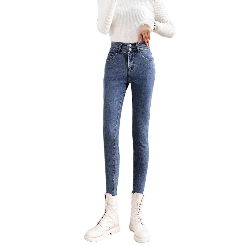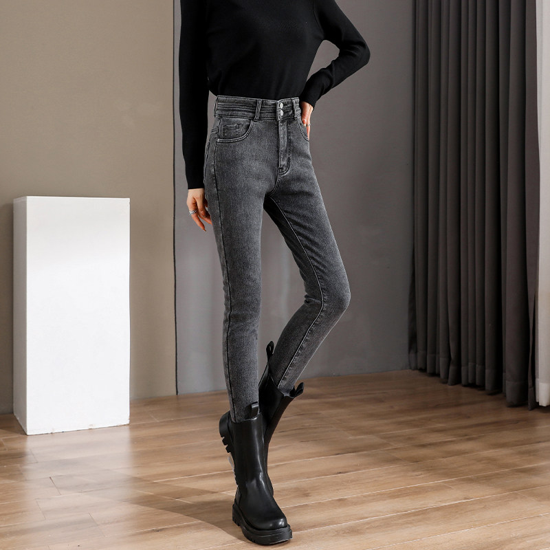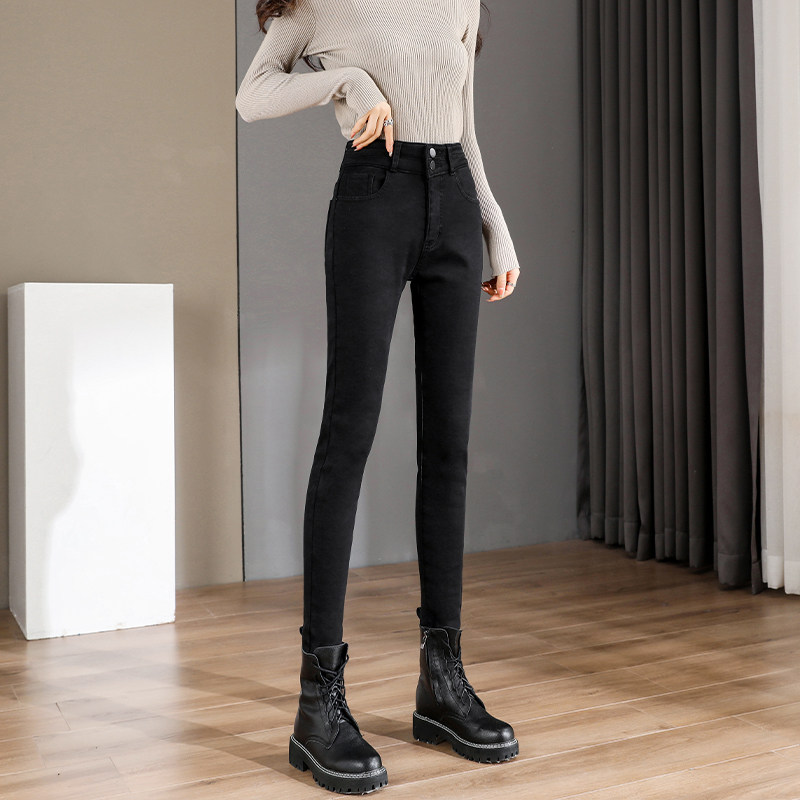 加绒高腰小脚牛仔裤女显瘦2025秋冬新款紧身提臀加厚百搭铅笔裤子
