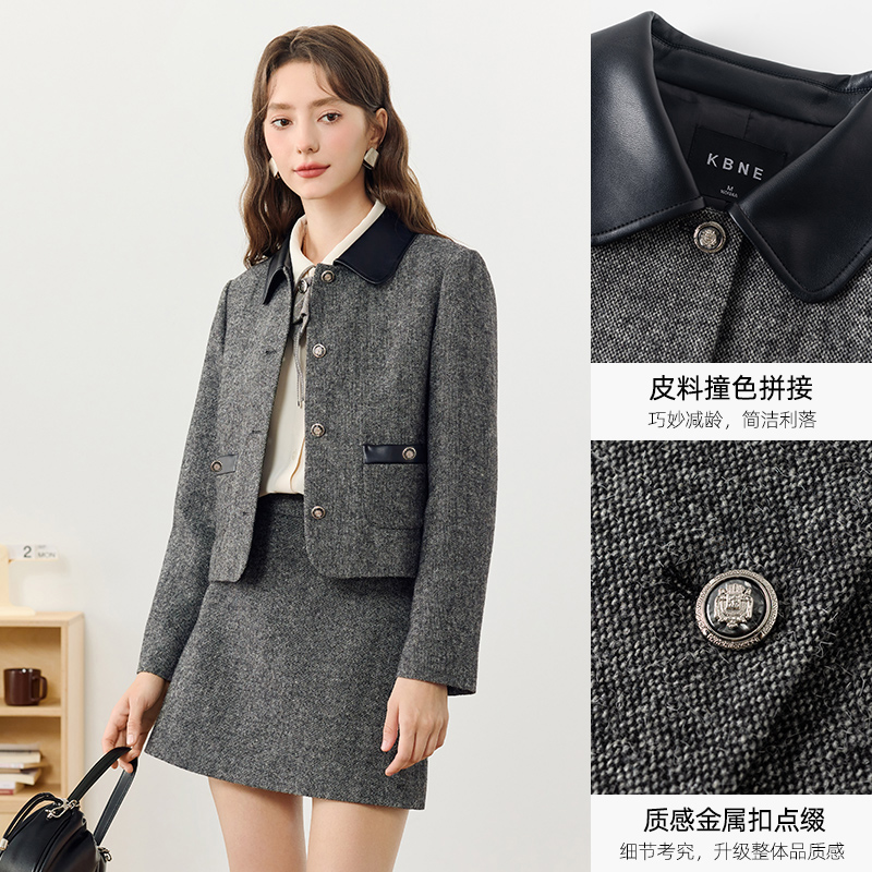 KBNE灰色短款羊毛气质毛呢外套2025秋冬新款小个子夹克上衣女装