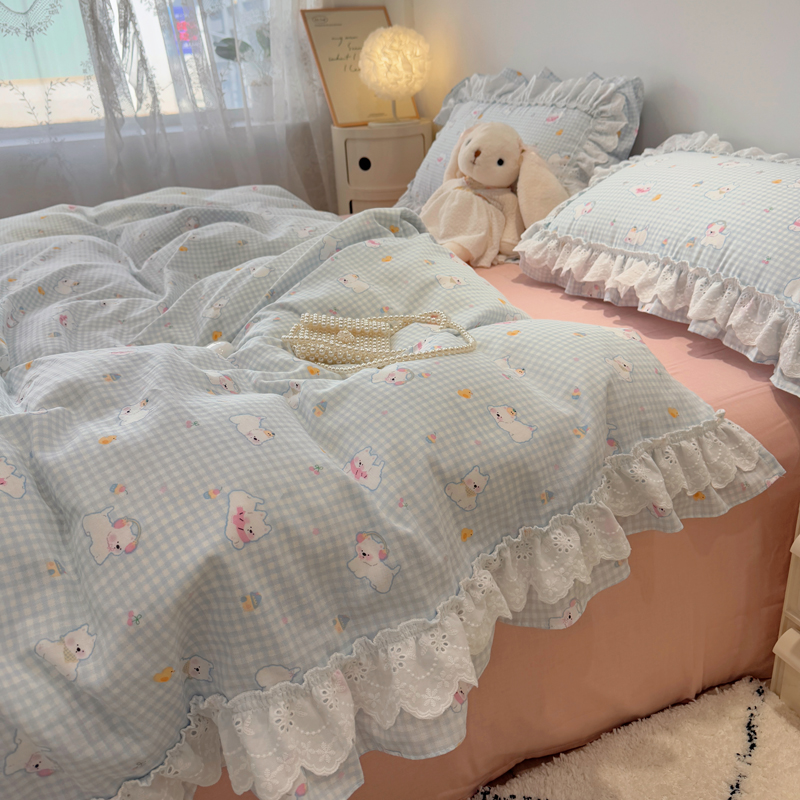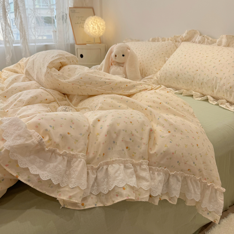 荷叶边仙女款双层纱全棉四件套公主风清新纯棉花边被套床裙款床品