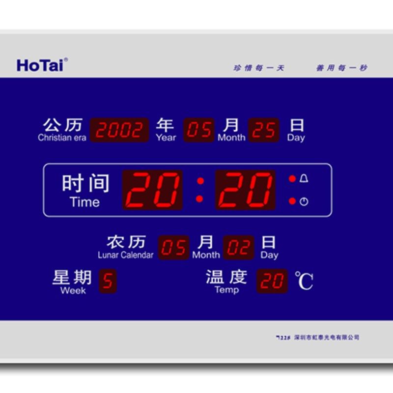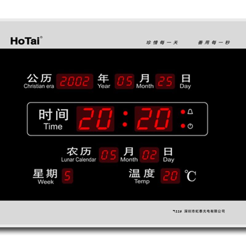 led新品虹泰228数码万年历电子钟夜光挂钟时尚闹钟客厅静音钟简约