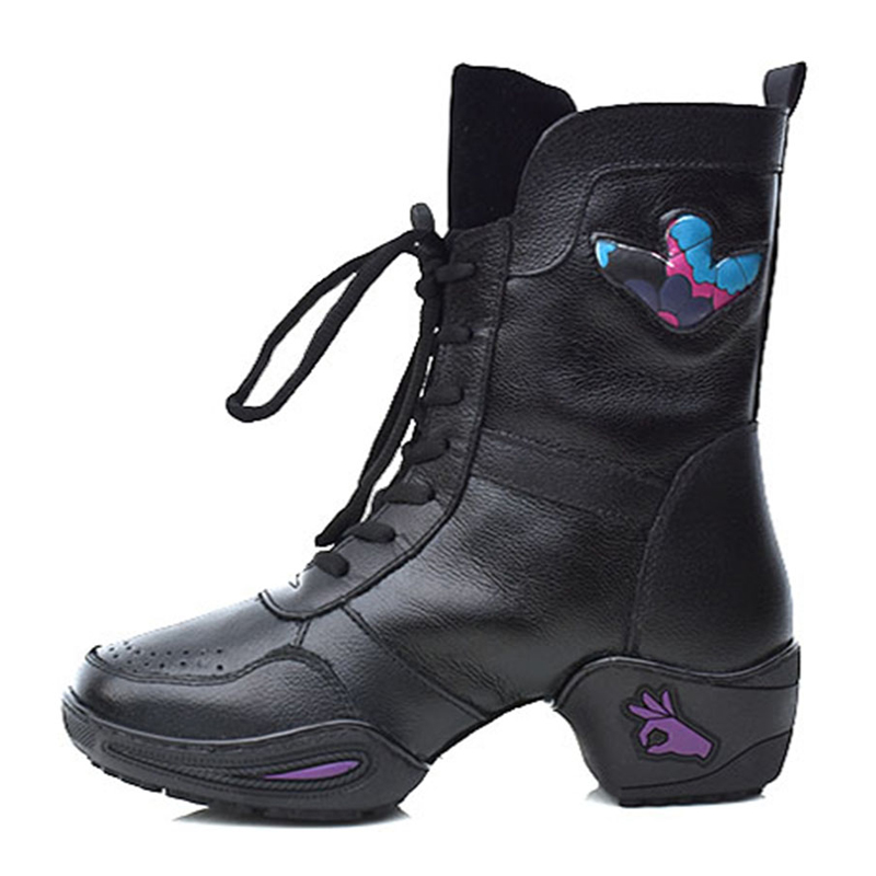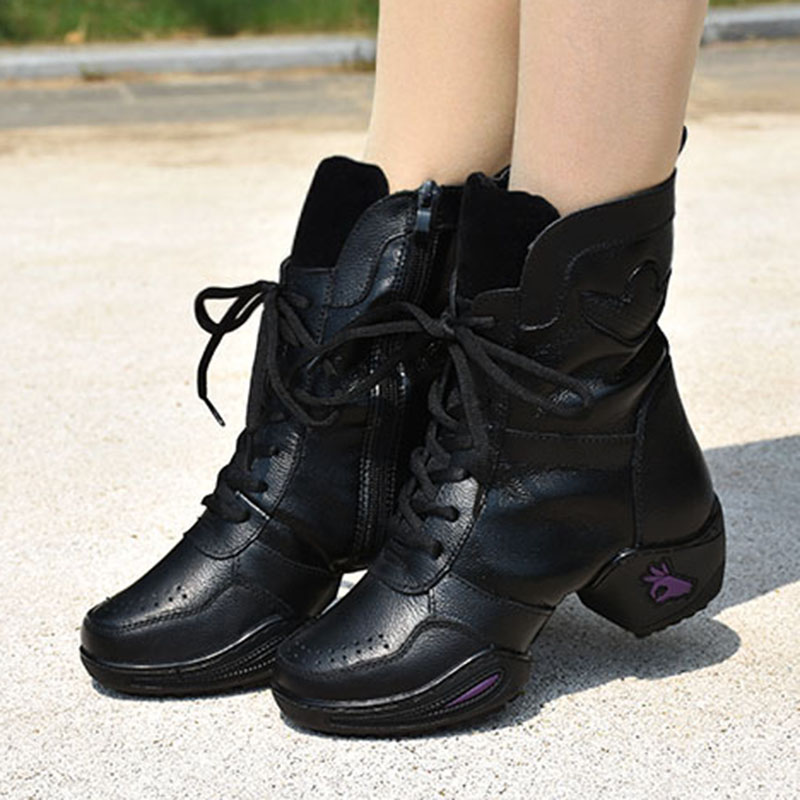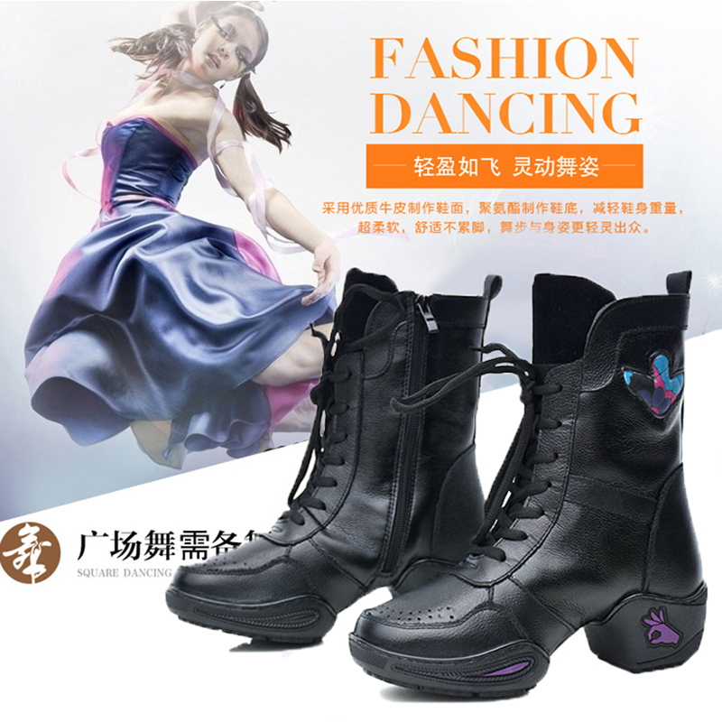 意中飞真皮舞蹈鞋女成人广场舞鞋爵士秋冬款跳舞鞋软底水兵舞蹈靴
