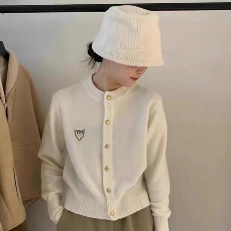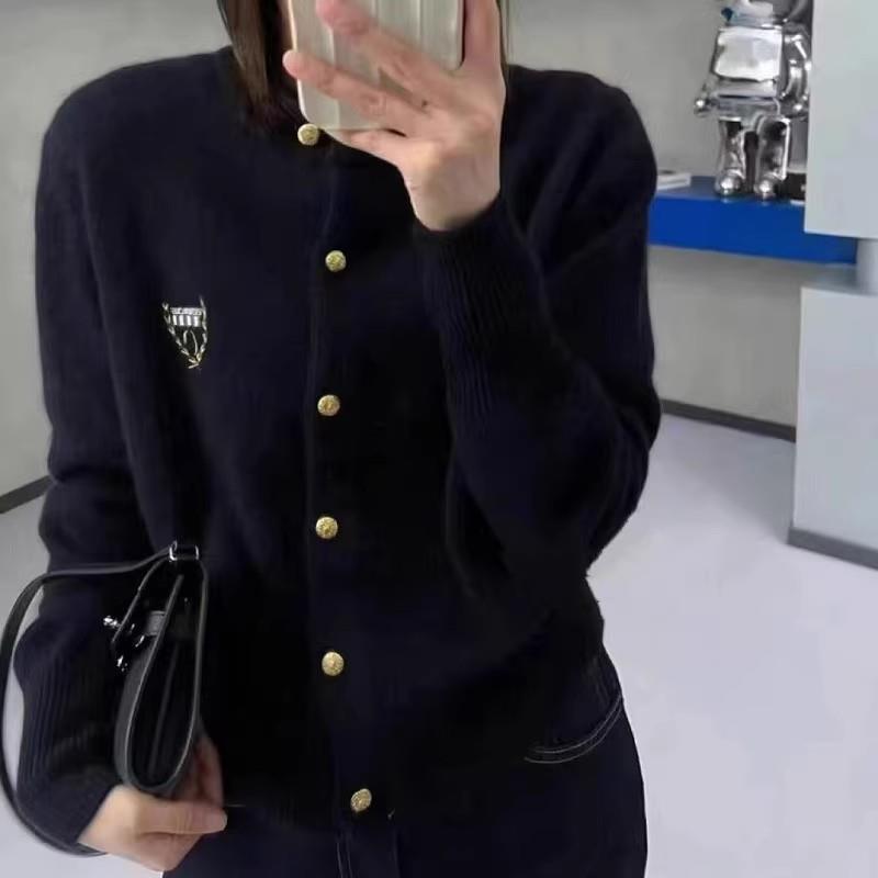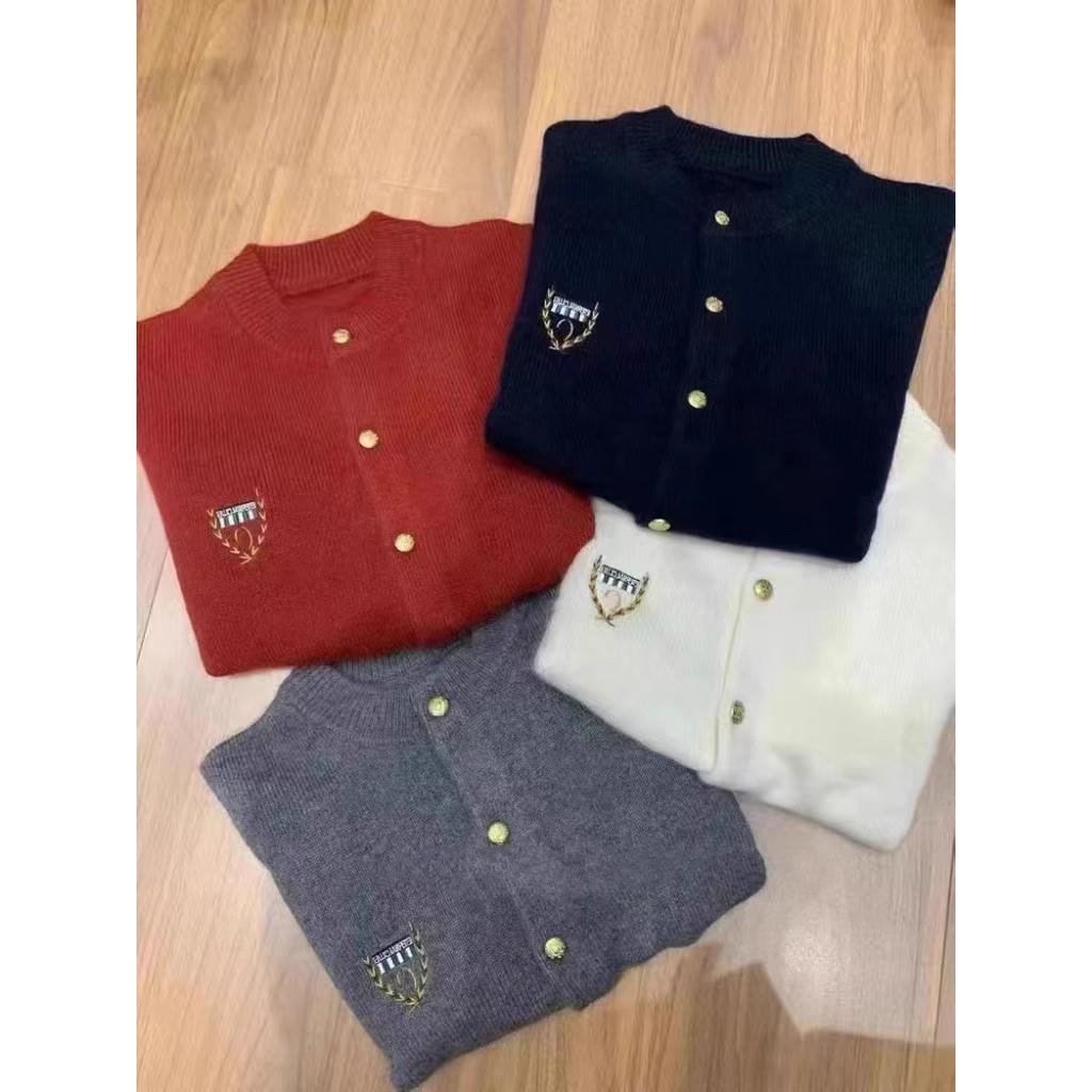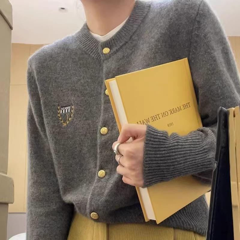 春秋圆领羊毛开衫外套女宽松短款英伦学院风徽章刺绣羊绒针织毛衣