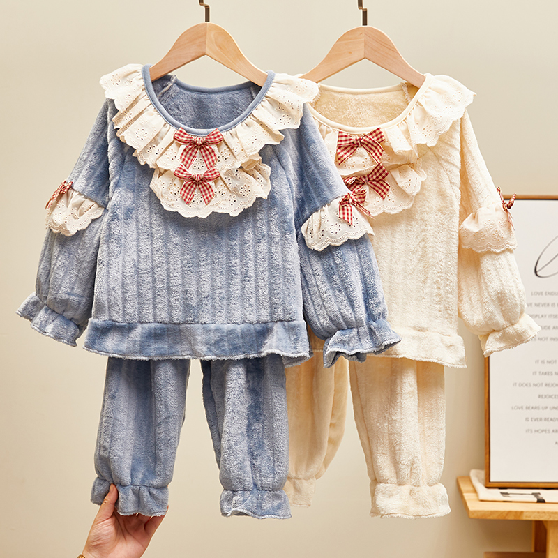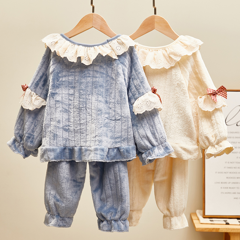 特价清仓!女童睡衣秋冬季加绒加厚款珊瑚绒女法兰绒家居服套装
