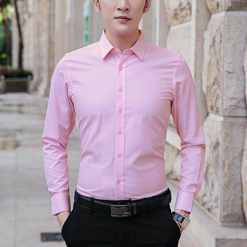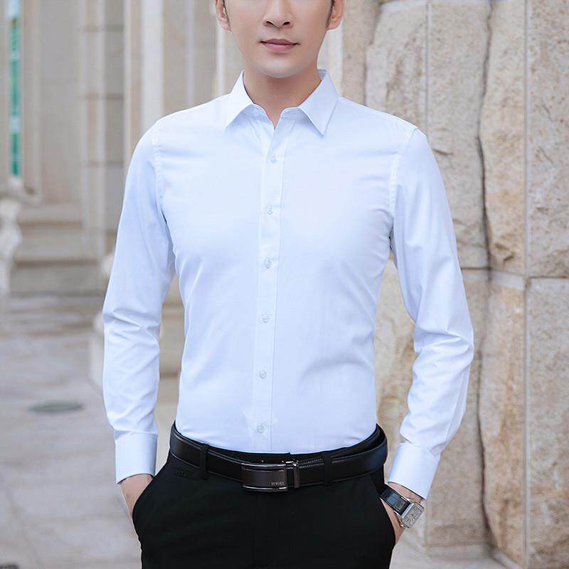 衬衫男长袖高级感冰丝商务正装修身寸衫滑料抗皱高端丝光棉白衬衣