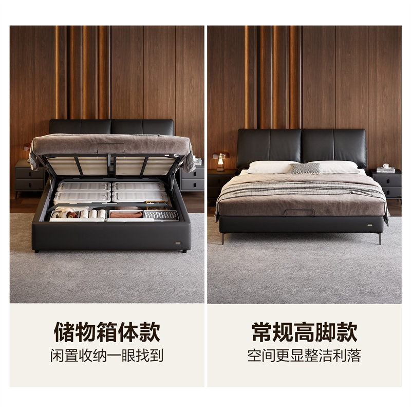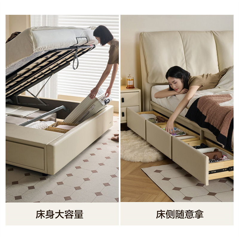 全友家居油风大象耳朵真皮大床主卧室双人抽屉储物床弹簧床垫组合