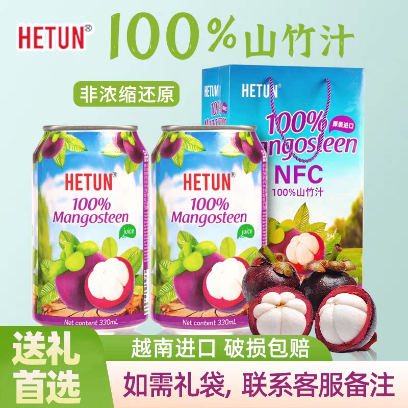 越南进口HETUN山竹汁NFC非浓缩0脂肪0添加剂100%果汁饮料330ml/罐