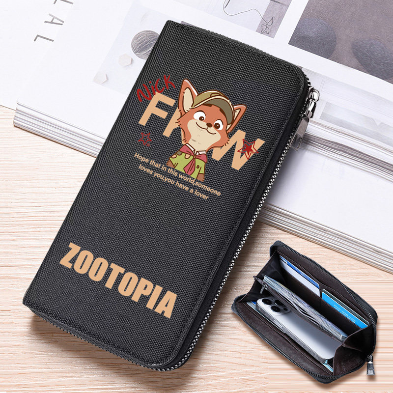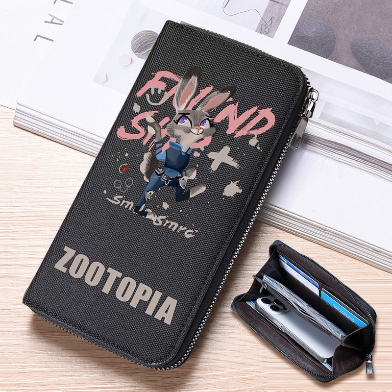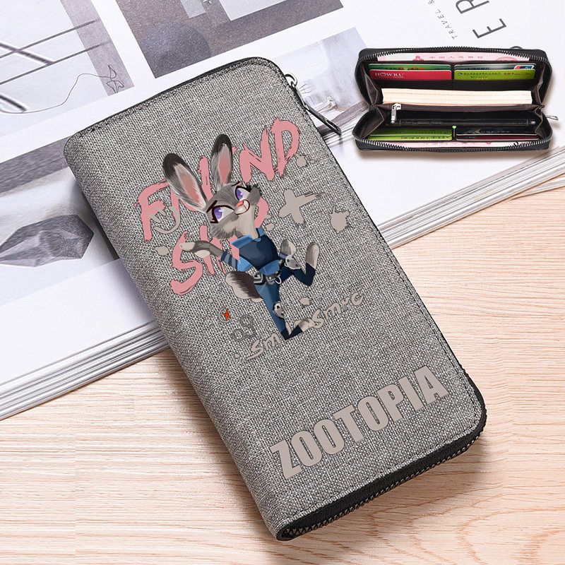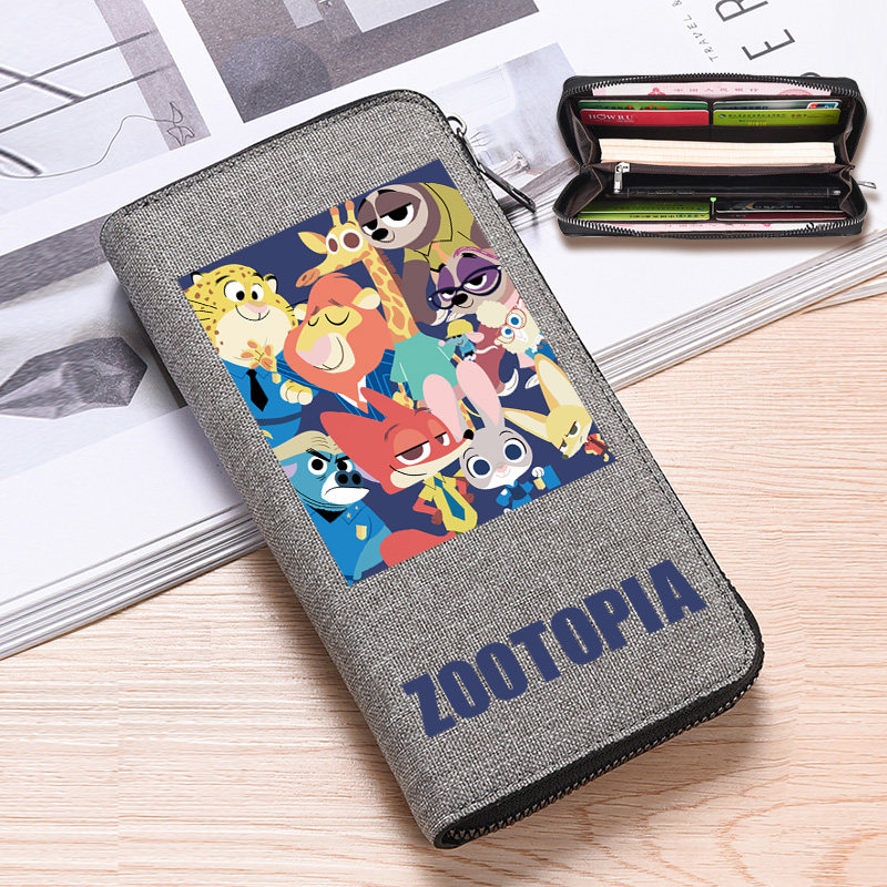 帆布钱包男疯狂动物城周边长款拉链时尚收纳包多卡位大容量零钱包