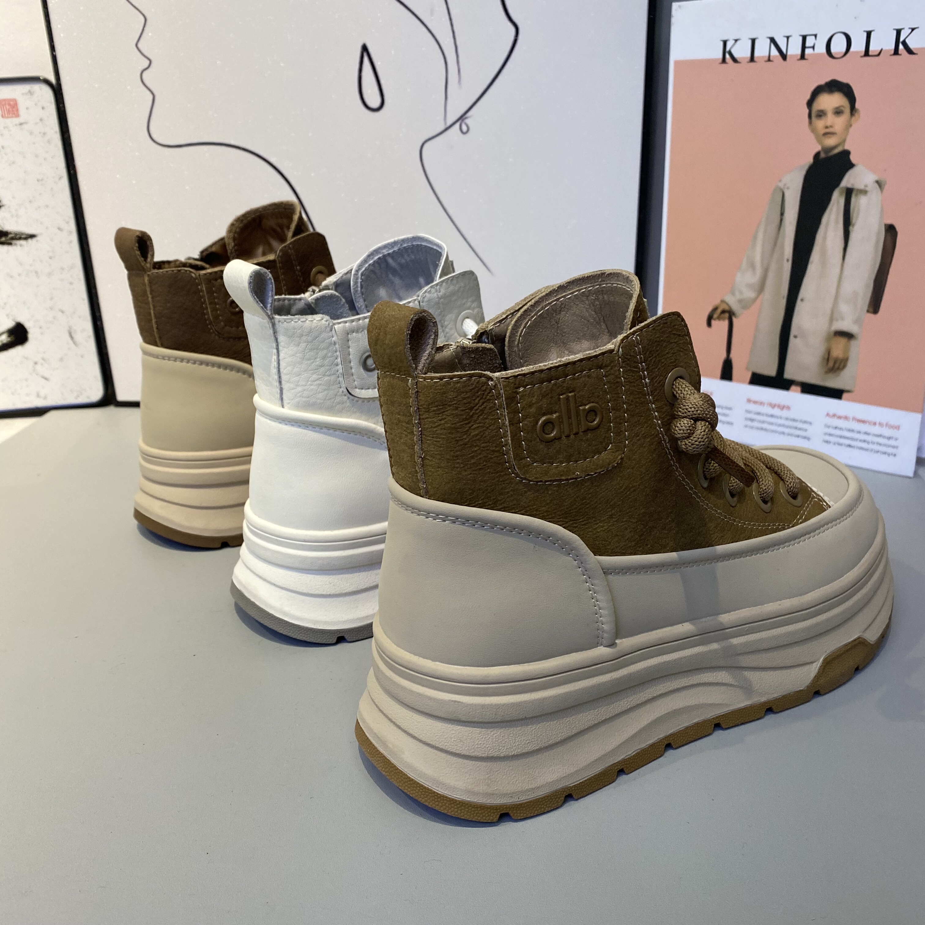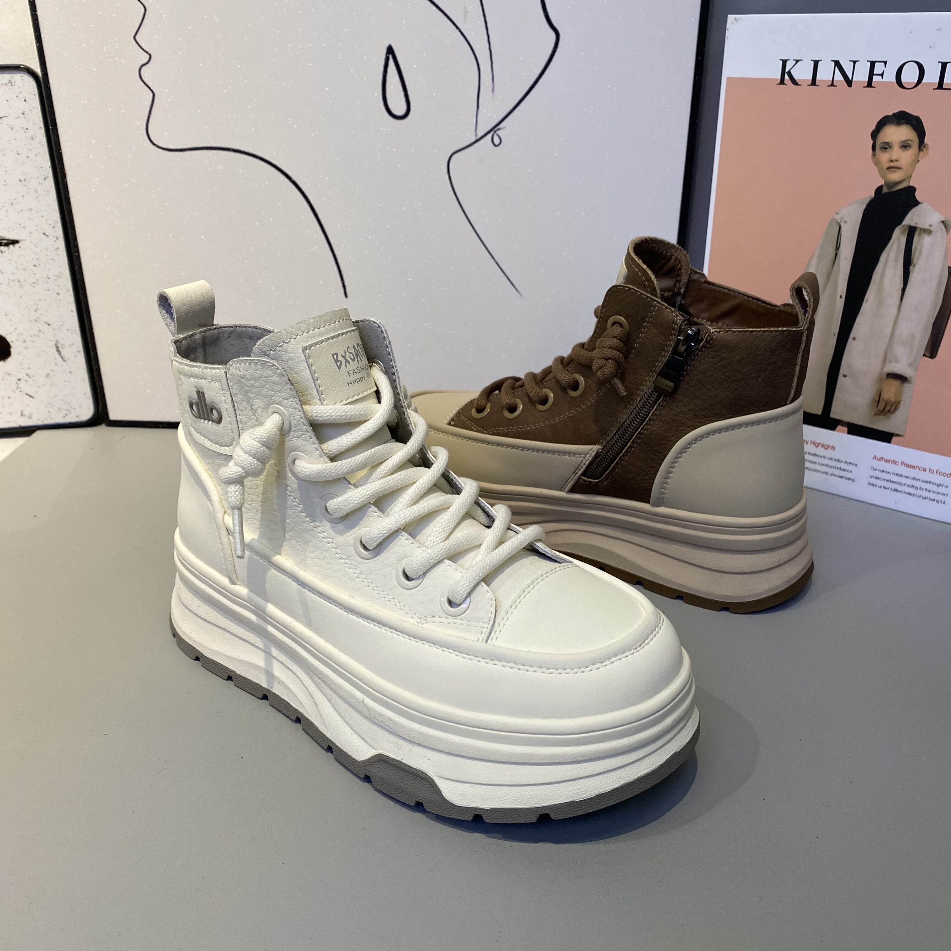 2025冬季女鞋防滑厚底加棉高帮休闲鞋真皮大棉板鞋高腰女棉鞋潮鞋