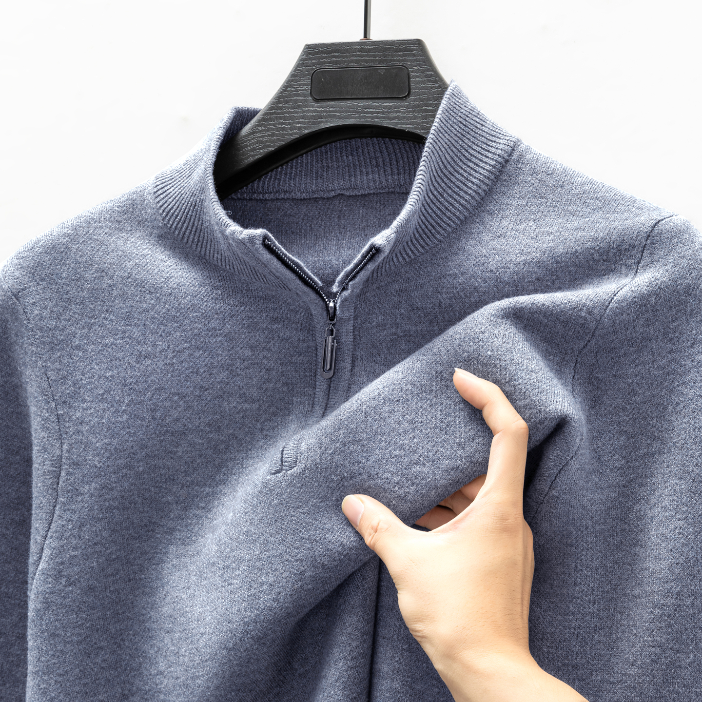 冬季羊绒衫男士半高拉链加厚保暖高档毛衣中年羊毛衫男加肥加大码