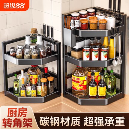 厨房多功能置物架台面墙角转角三角架调料架调味品壁挂多层收纳架