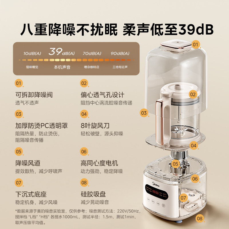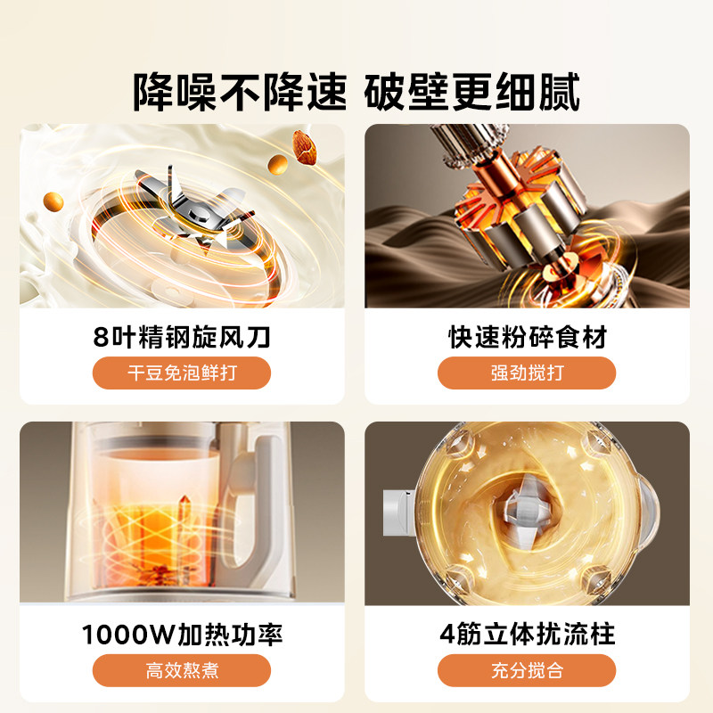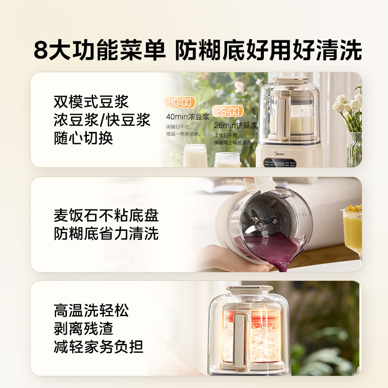 美的破壁机家用全自动轻静音小型豆浆榨汁料理一体机官方正品新款