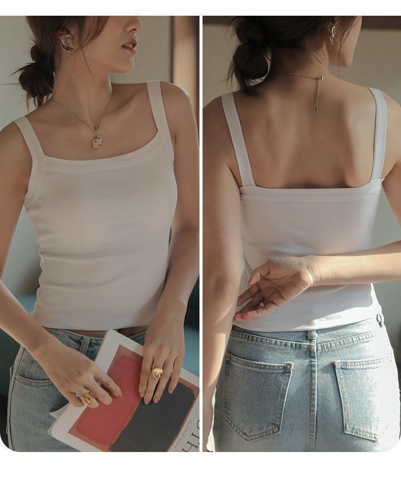 白色一字领吊带背心女内搭夏季女装上衣紧身西装打底美背外穿