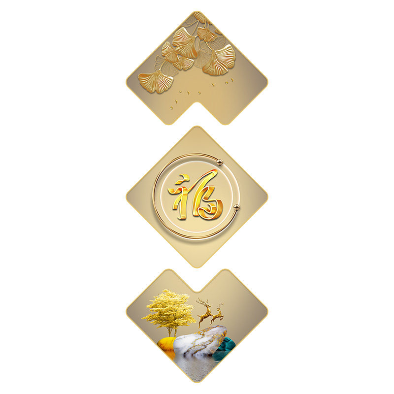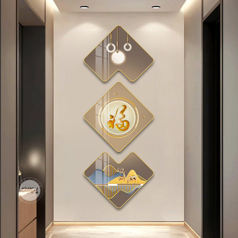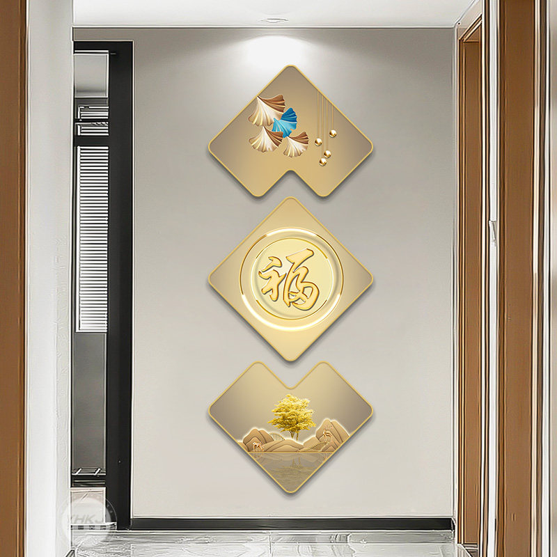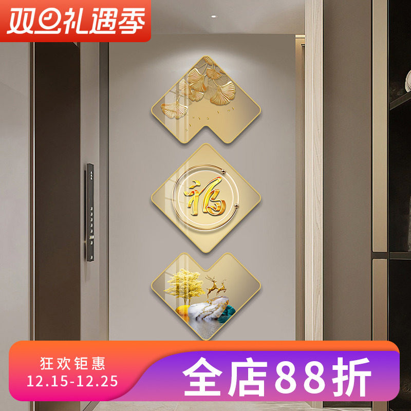 现代轻奢福字玄关装饰画新中式入户正对门挂画走廊过道三联墙壁画