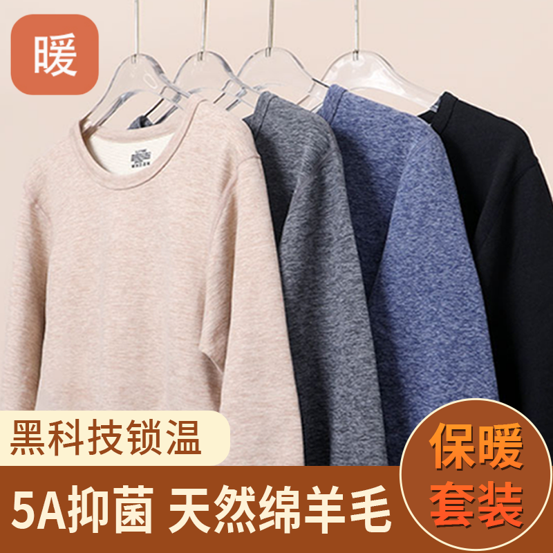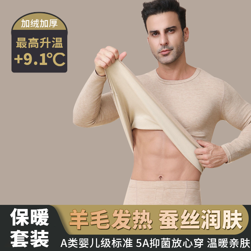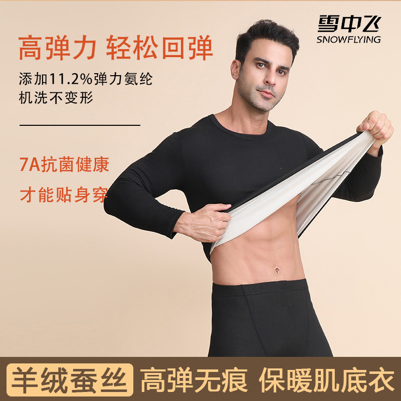 雪中飞男士羊绒桑蚕丝保暖内衣套装秋冬磨绒亲肤透气锁温秋衣秋裤