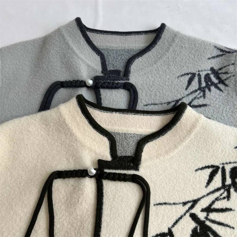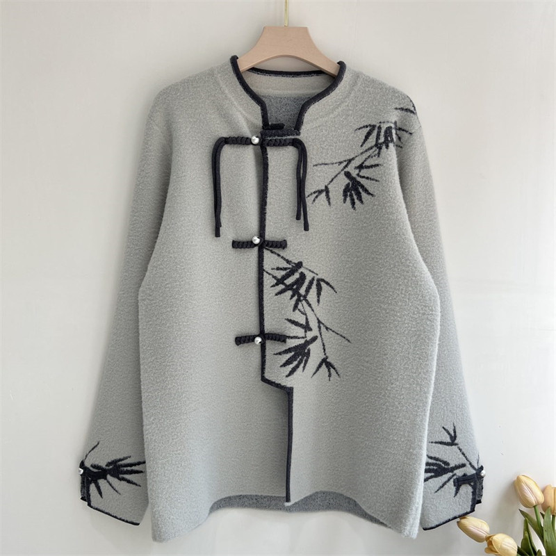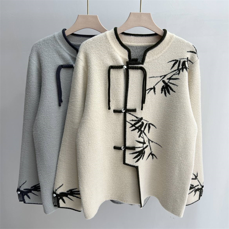 妈妈秋装2024新款国风毛呢外套高贵中老年女装新中式盘扣针织开衫