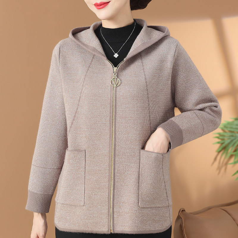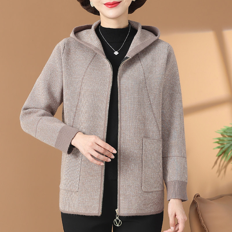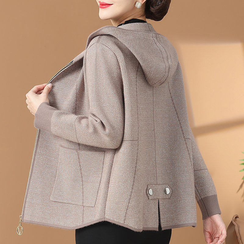 中年妈妈秋装新款上衣女连帽