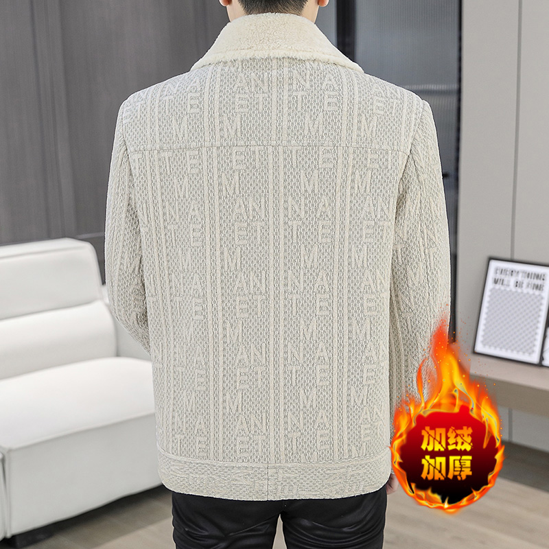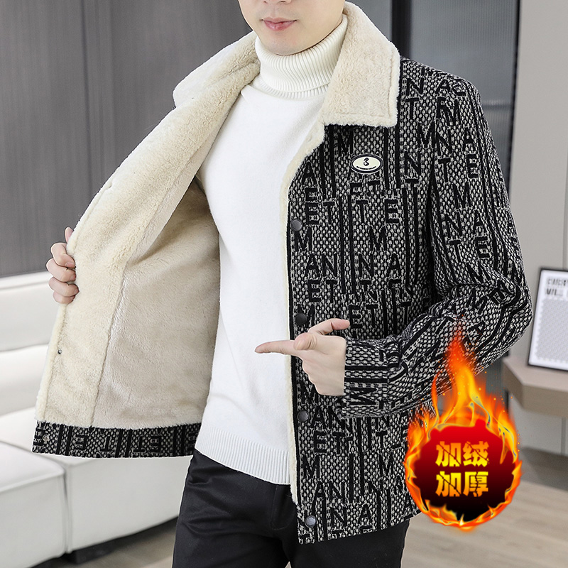 2025冬季加绒毛呢大衣男士外套时尚休闲青年潮牌翻领夹克衫上衣服