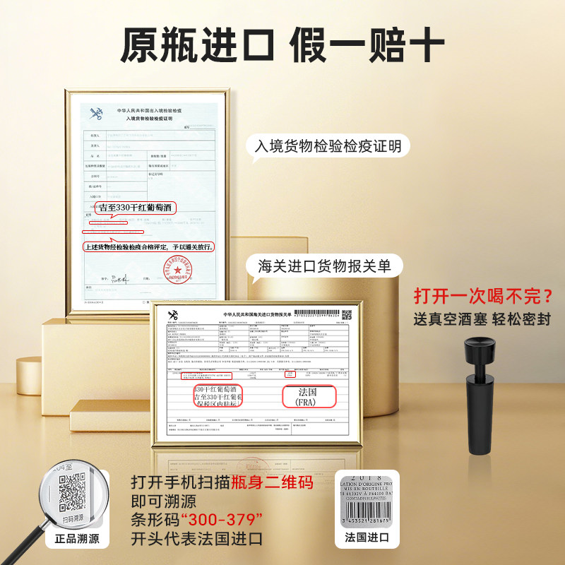 吉至法国波尔多原瓶进口干红葡萄酒红酒330整箱6瓶正品官方旗舰店