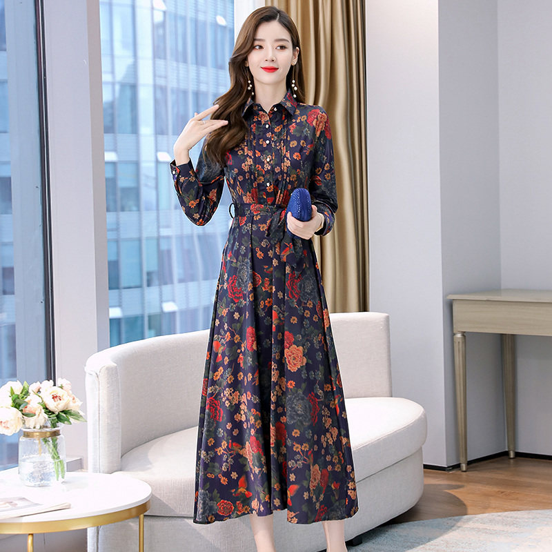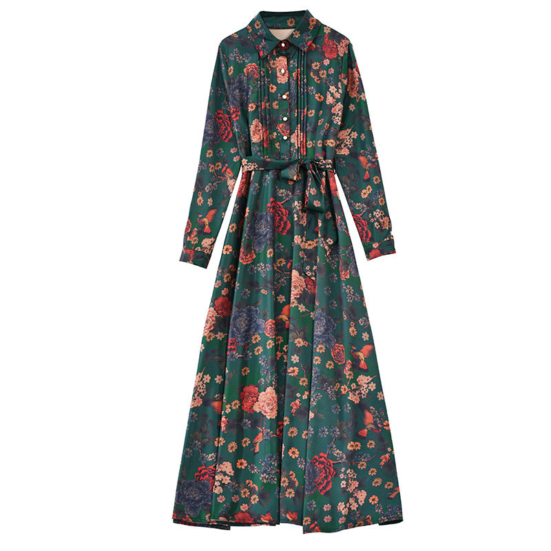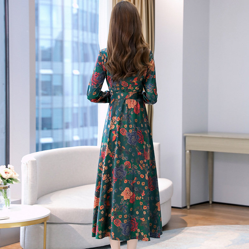 杭州夫人真丝连衣裙2022秋季中年