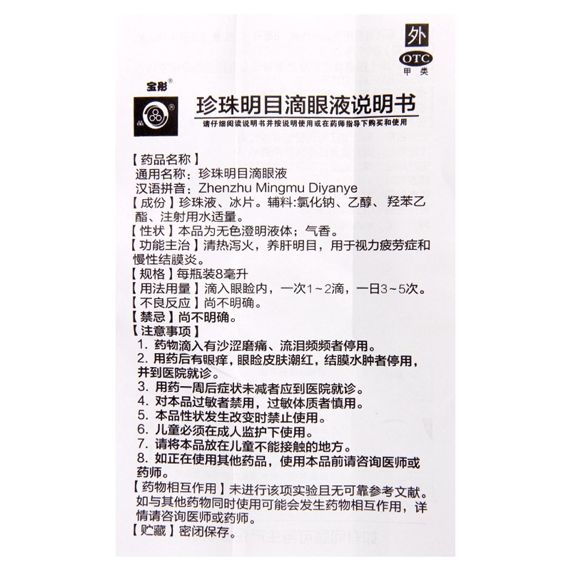 【晶】珍珠明目滴眼液8ml*1支/盒