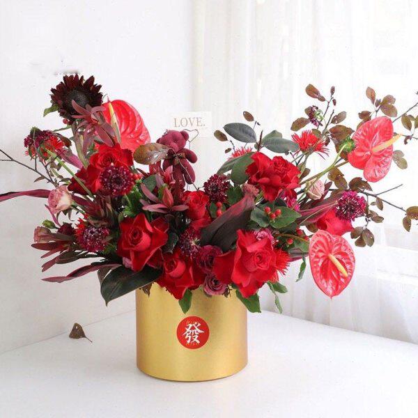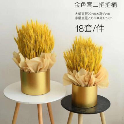 金色套二抱抱桶开业大麦花桶圆形花盒鲜花银柳插花桶年宵花礼盒