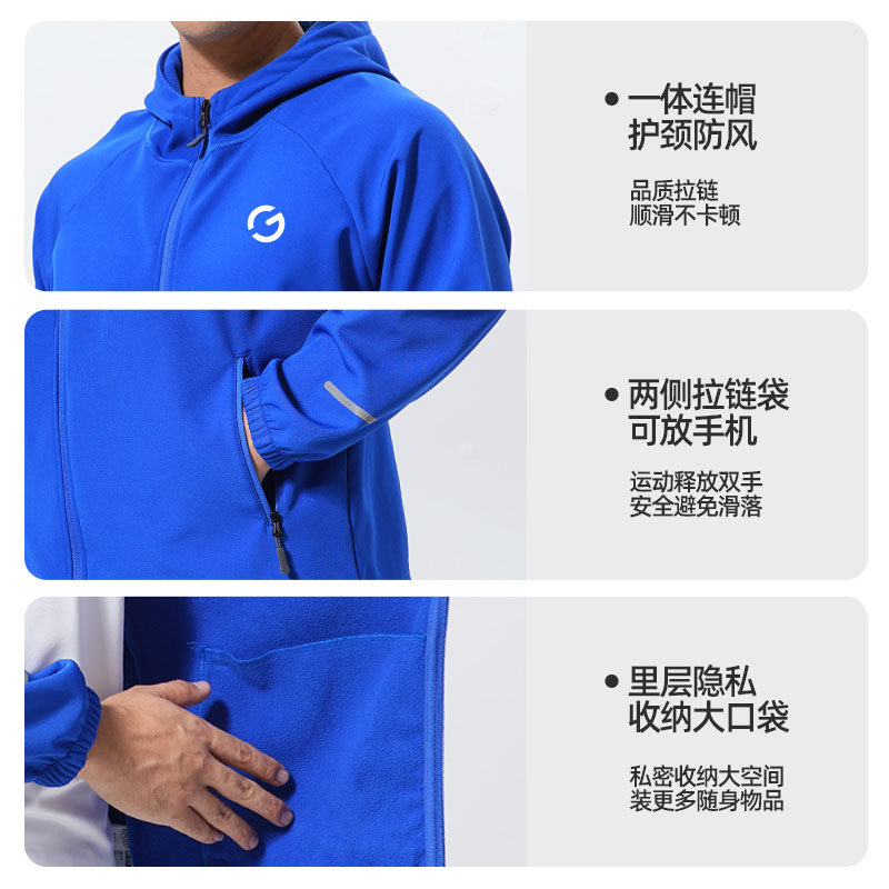 橙义家跑步运动外套男女款健身训练连帽防风防泼水加绒保暖冲锋衣